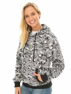 Tops Prodigy Black & White Skull Print Pull Over Unisex Hoodie