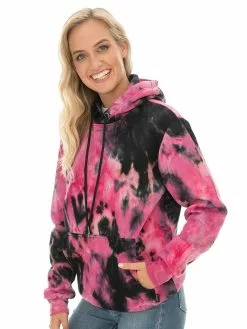 Tops Prodigy Unisex Black Pink Tie Dye Popover Hoodie